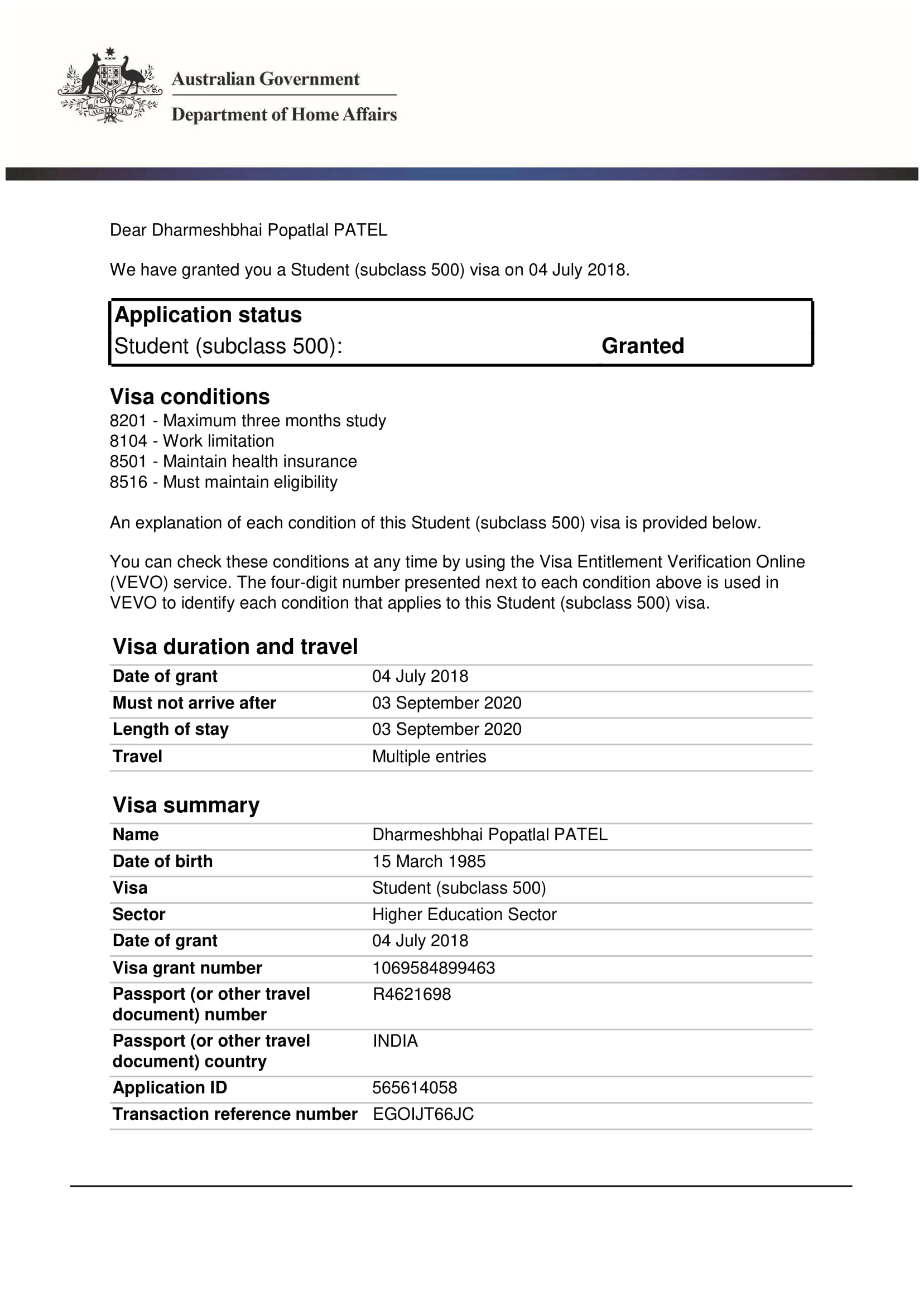 Our Successful Visas